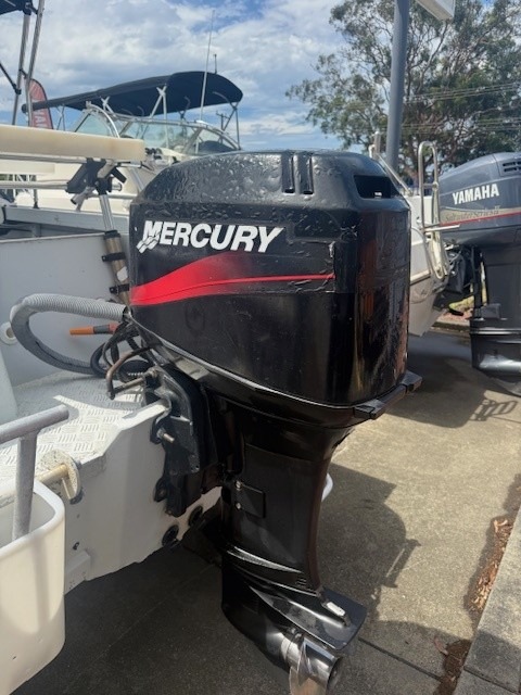 50hp Mercury Motor 2 stroke the cowl is a little rough around the edges but the motor is sound