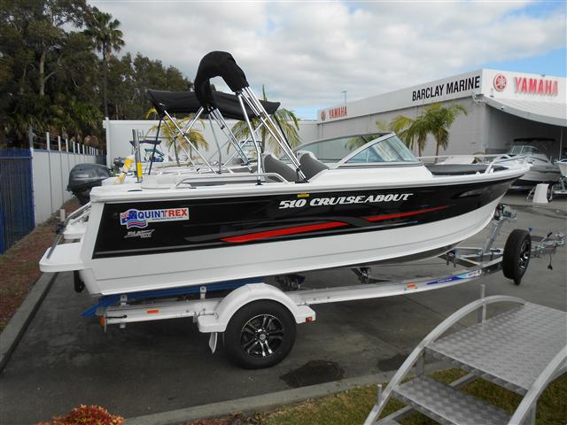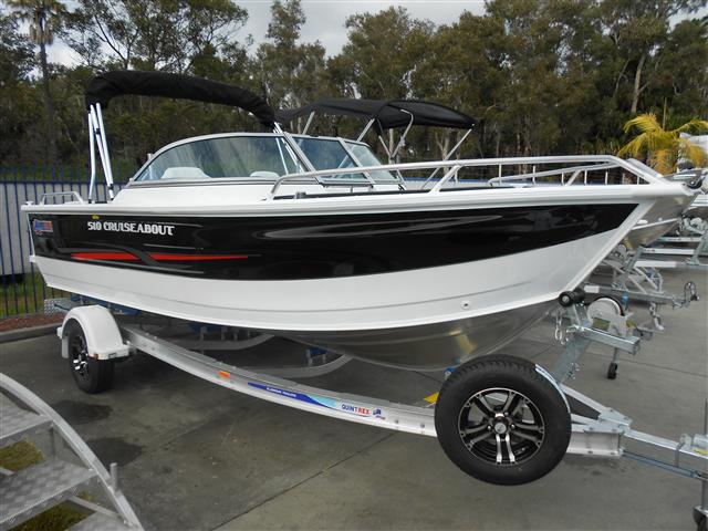 Quintrex 510 Cruiseabout New 2018 model fitted with a Yamaha F115hp 4/stroke motor with stainless steel prop on a quintrex alloy I-Beam trailer with alloy mags and matching spare wheel, this boat comes with bimini top and envelope, bow cover, sealed floor, stainless steel ski pole, Hook 2-5 gps unit, vhf radio, ladder, nav lights and bilge pump, two tone paint work. Boat looks good, as us about organizing YMF finance for you. All regos and safety gear are included in the price.