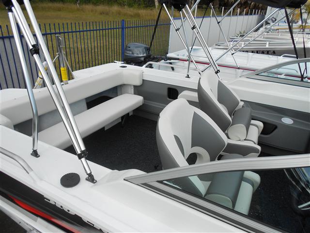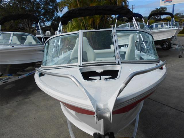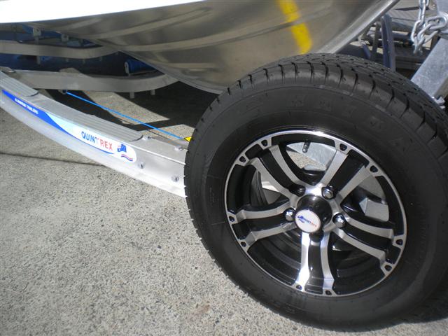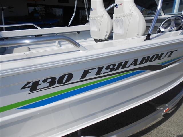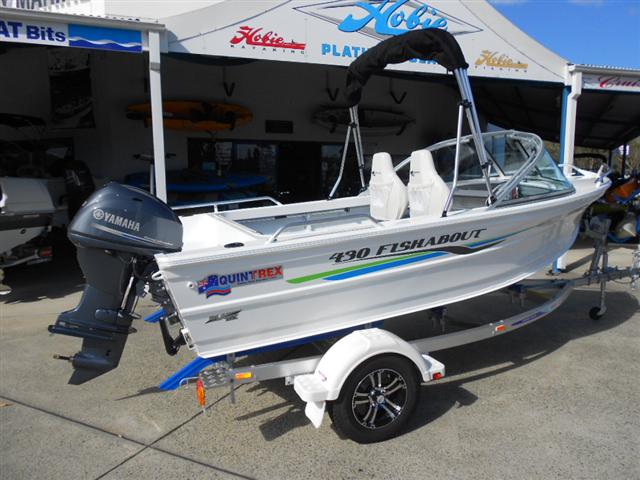 Quintrex 430 Fishabout New with 2 tone paint and fitted with a Yamaha F40hp 4/stroke motor on a quintrex alloy trailer with alloy mag wheels and extra flipper guides to make loading easier for you, this package comes with bimini top, side pockets, nav lights and bilge pump, sealed timber floor, cargo net, tansom step and rail, rod holders, split bow rail. All regos and safety gear are included in the price. Ask us about organizing YMF Finance for you on this package.