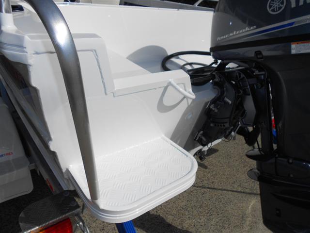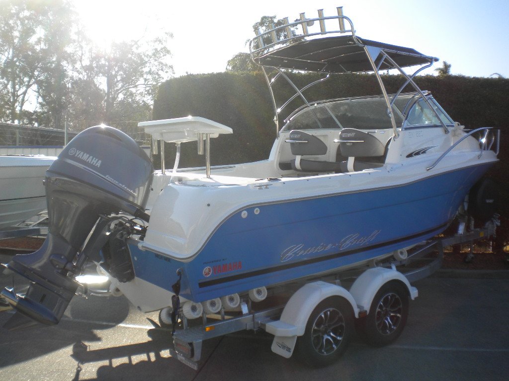 fitted with a yahama 130hp 4/st motor with hydraulic steering and stainless prop,rocket launcher,bimini top with full clears,deckwash,vhf radio,livewell,transom door,storm cover,spare wheel and catch and release,on a easytow trailer,also C-dek which looks great.