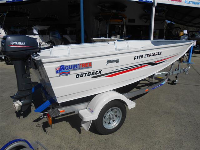 Quintrex Explorer Outback 370 New white fitted with a Yamaha 15hp long shaft 2/stroke motor package comes with quintrex alloy trailer, lower floor and fuel tank rack all regos and safety gear are included in the price.