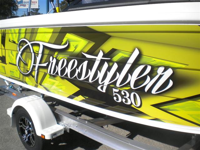Quintrex 530 Freestyler bowrider 2018 model fitted with a wrap (looks good)boat will be fitted with a Yamaha F130hp 4/st motor with stainless prop and 6YC smart gauge on a quintrex I-Beam trailer with mag wheels and matching spare wheel also catch and release to make loading and unloading easy, this package comes with bimini top and envelope, bow cover, ski pole, ladder, fusion sound system, lowrance hook 2-5 gps sounder, sealed floor, nav lights and bilge pump. Great looking boat. All regos and safety gear are included in this price. Ask us about organizing YMF Finance for you on this package.